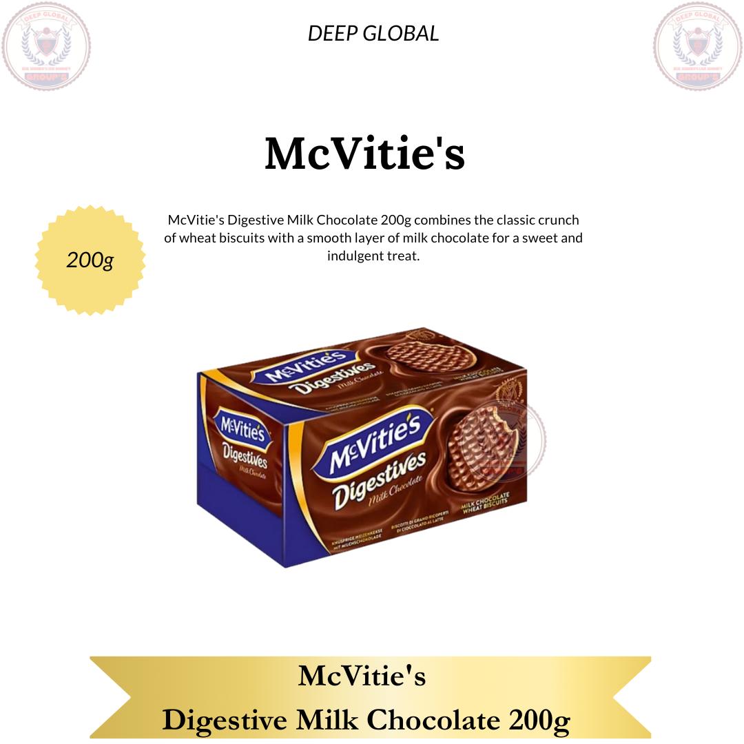 McVitie's Digestive Milk Chocolate 200g combines the classic crunch of wheat biscuits with a smooth layer of milk chocolate for a sweet and indulgent treat.